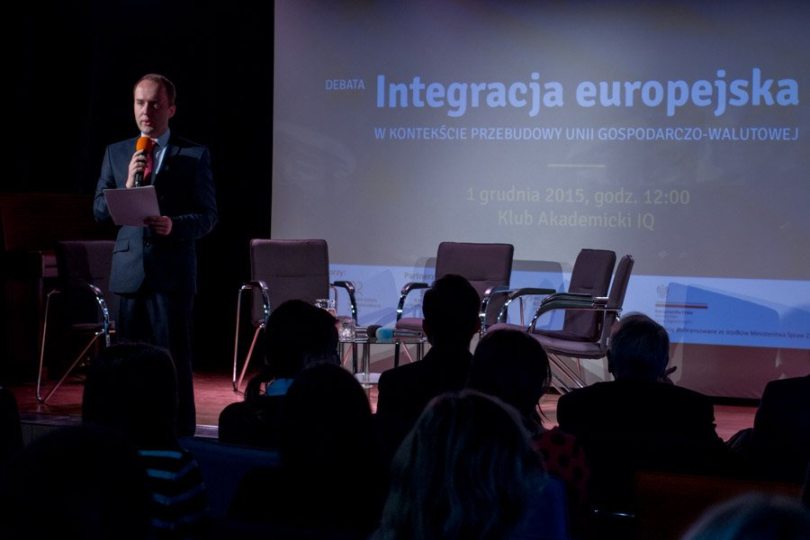 1 grudnia w Klubie Akademickim IQ WSIiZ odbyła się debata pod tytułem „Integracja Europejska w kontekście przebudowy Unii Gospodarczo-Walutowej”. Spotkanie zostało organizowana przez Regionalny Ośrodek Debaty Międzynarodowej w Rzeszowie. Współorganizatorem był m.in. Instytut Badań i Analiz Finansowych WSIiZ. Debatę poprowadził dziennikarz Polskiego Radia Rzeszów – Adam Głaczyński. W wydarzeniu wzięli udział: prof. Bartłomiej Kamiński – ekspert Banku Światowego, Anna Kosior – dyrektor Biura Integracji ze Strefą Euro Instytutu Ekonomicznego NBP, dr Jacek Rodzinka – dyrektor ds. Rozwoju Komercji Instytutu Badań i Analiz Finansowych WSIiZ w Rzeszowie, dr Marcin Halicki – ekonomista Uniwersytetu Rzeszowskiego.